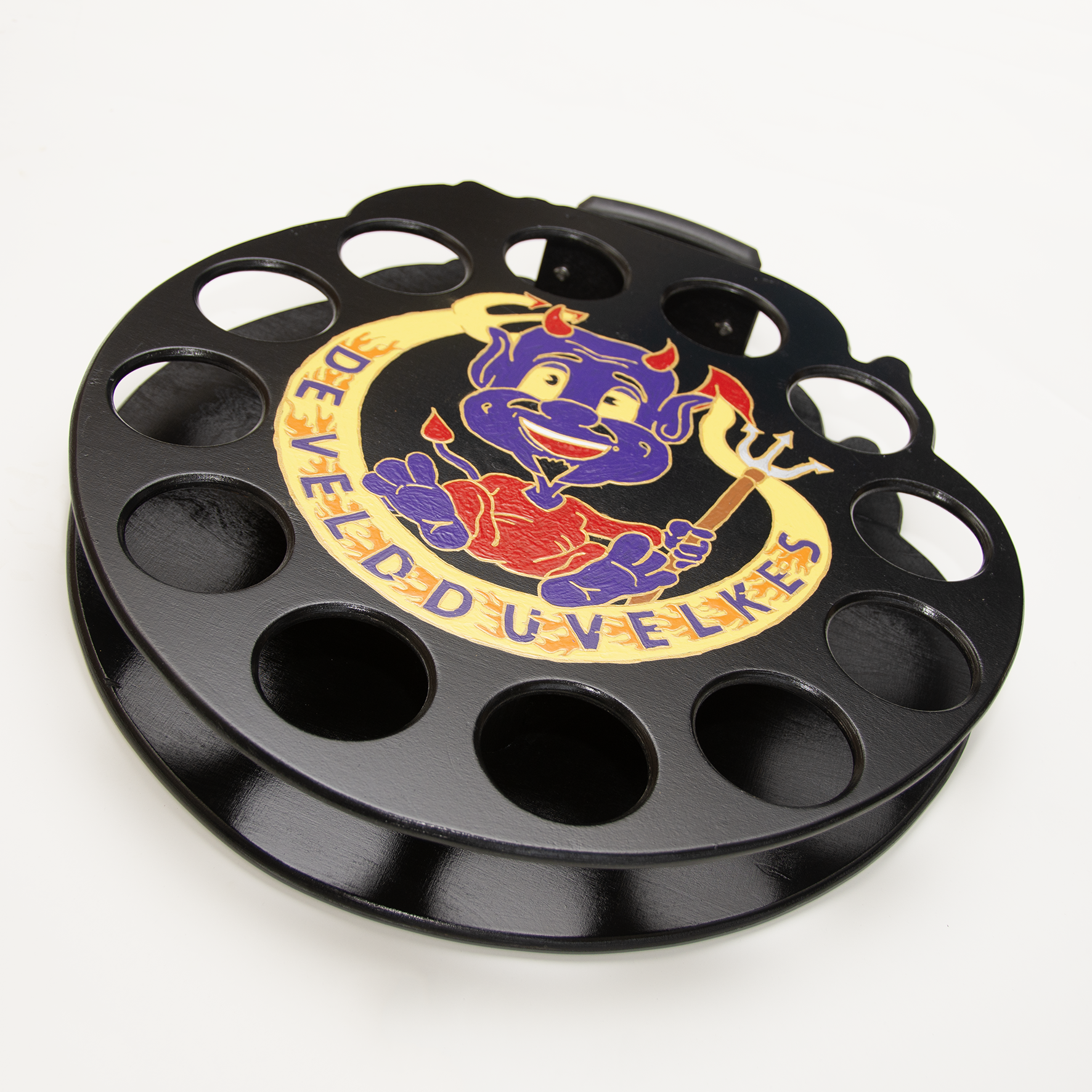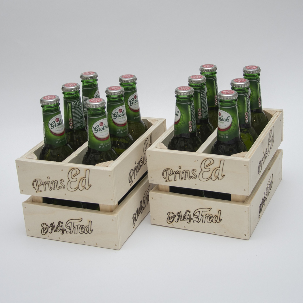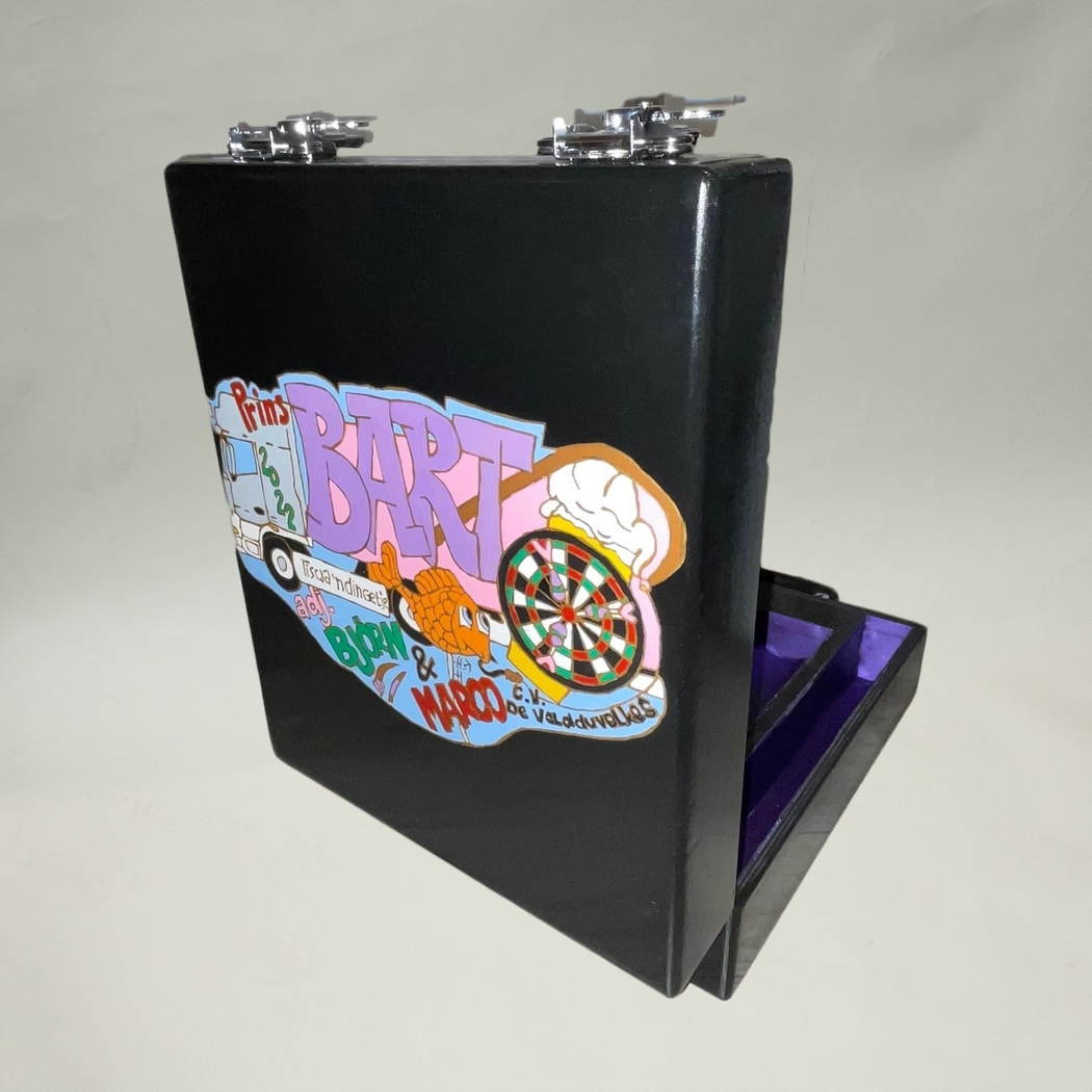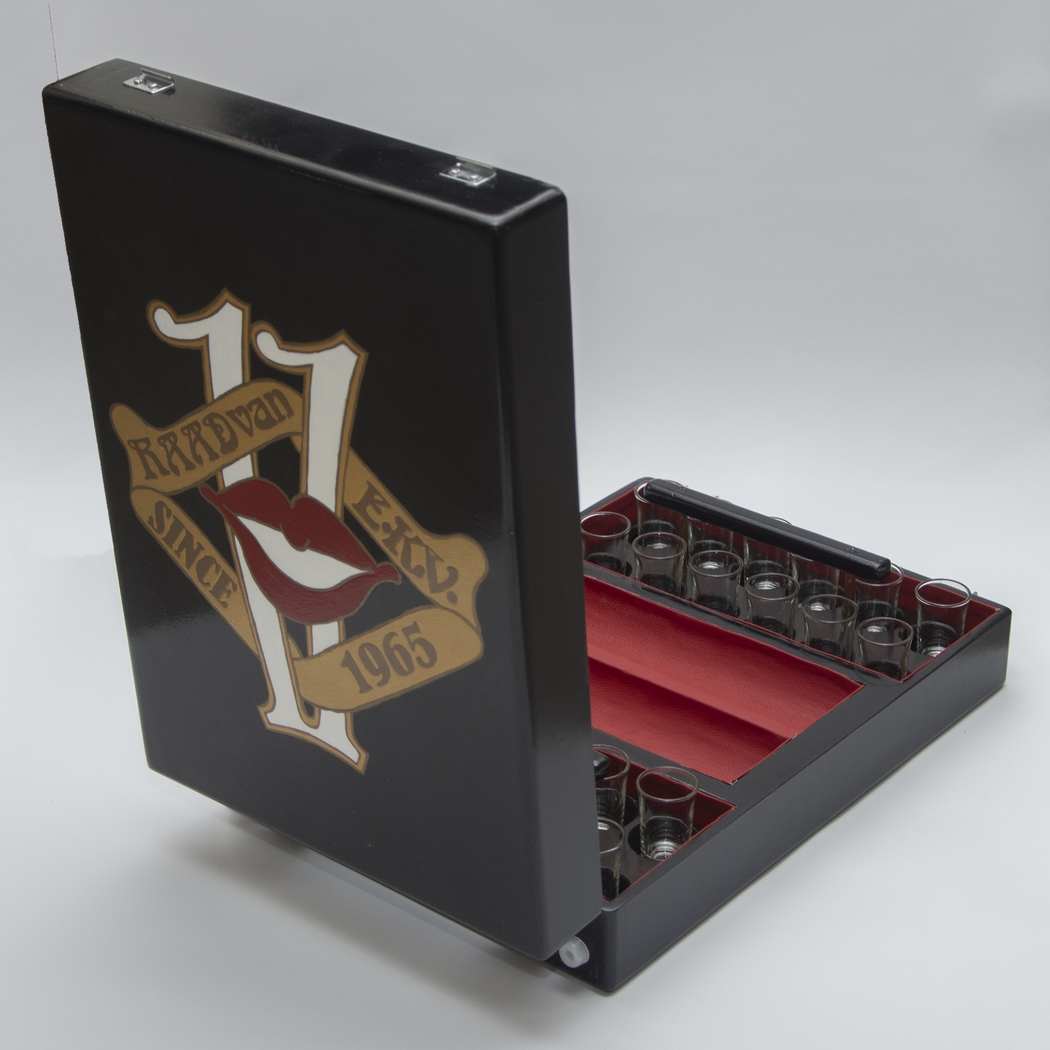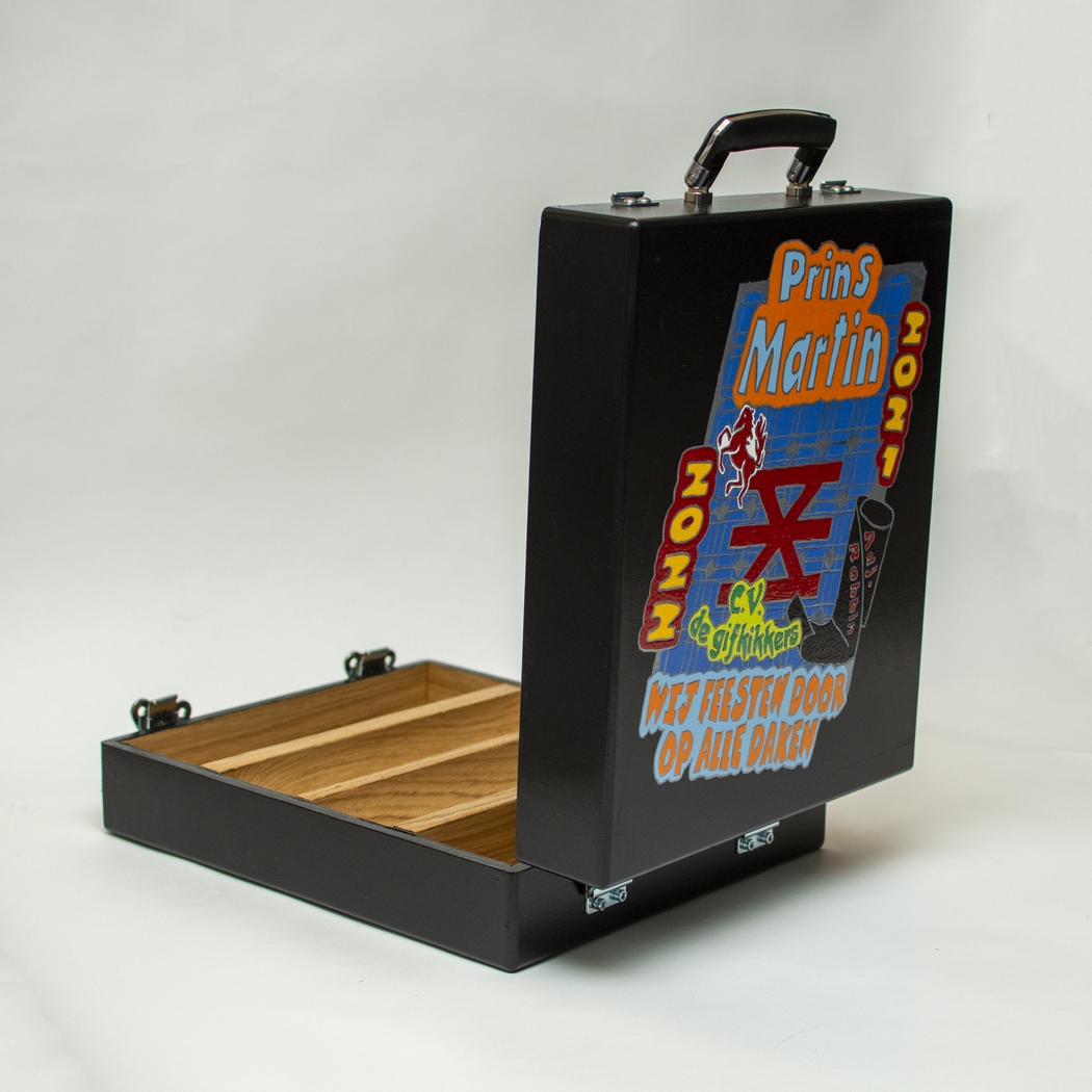 Bij koffers en dienbladen kan bijvoorbeeld het logo er met de hand opgeschilderd worden.