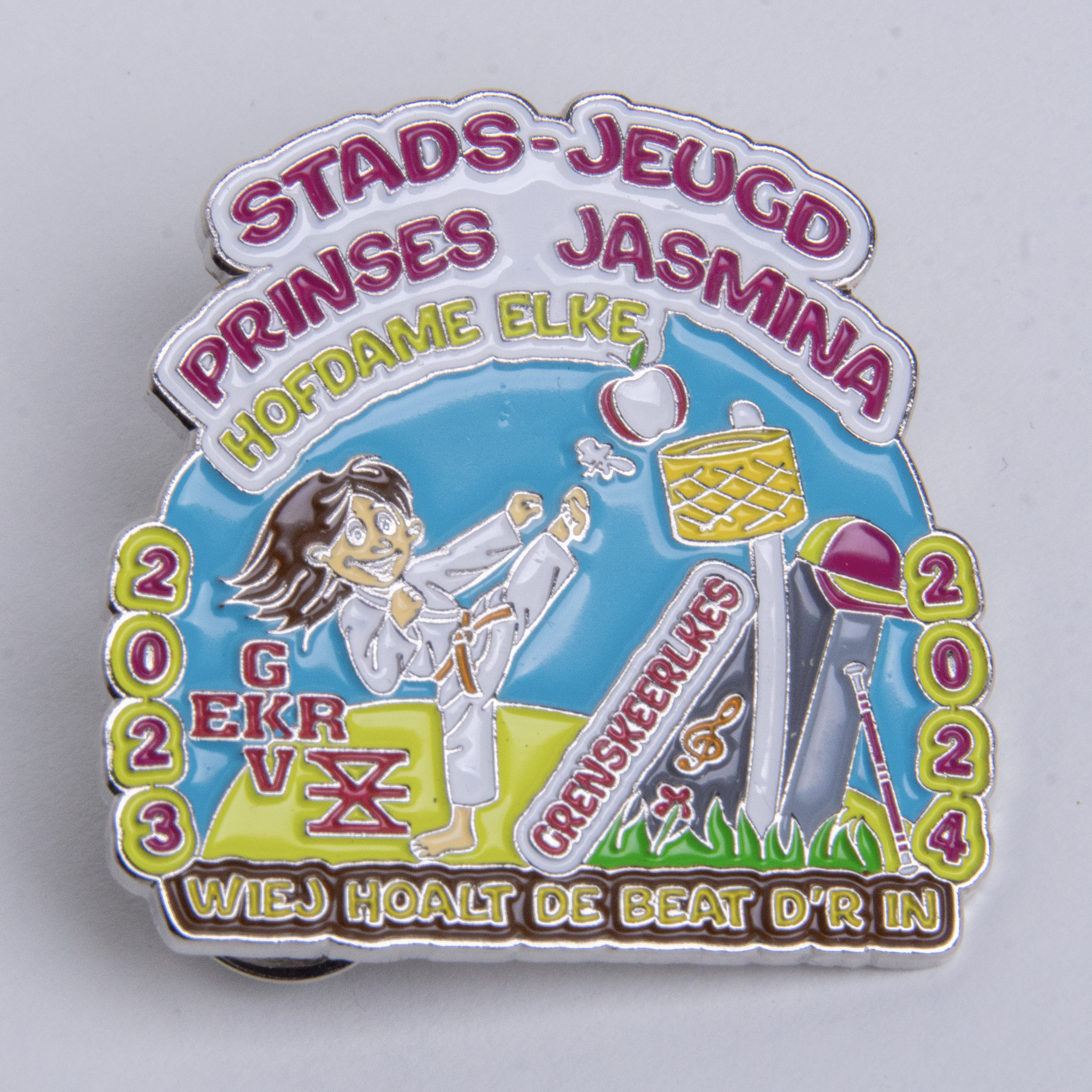 Pins (speldjes) in alle soorten en maten. Het ontwerp wordt vaak afgeleid van een onderscheiding maar dan veel kleiner. Het ontwerp wordt zo gemaakt dat deze twee bevestigingspunten aan de achterkant heeft, zodat het niet weg kan draaien of op de kop kan gaan hangen.
